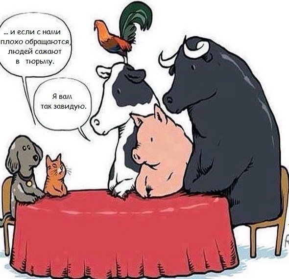 Животные стали жертвами на столько, что уже не воспринимаются как жертвы. Их вообще никак не воспринимают, они – пустое место. До них нет никому дела, они товар – как телевизоры и телефоны. Фактически люди превратили животных в неодушевленные предметы — сэндвичи и обувь. Это величайший трюк из когда-либо проделанных – лишение одушевленности! И кроме того, люди на этом зарабатывают деньги, продавая их плоть, кожу и то, что производят их тела, не оказывая им и капли достойного внимания! Возьмём для примера национальный флаг, который является ничем иным как куском ткани. Или Библию. Всего лишь книга, сделанная из бумаги и чернил. Эти вещи вызывают больше эмоций, чем убийство животных. Если сегодня рядом с кампусом будет барбекю, если люди будут жарить стейки и гамбургеры – это будет веселье! Люди будут рады убийству коровы: тому, что один человек убил её, а другой приготовил её труп. Но если кто-то посмеет облить бензином флаг или Библию, зажечь спичку и придать их огню…Господи помилуй! разъяренная толпа будет готова убить кого-нибудь! Эти безжизненные, НЕОДУШЕВЛЕННЫЕ ПРЕДМЕТЫ: флаг и Библия — имеют большую неприкосновенность чем животные; ЖИВЫЕ СУЩЕСТВА, которые дышат и чувствуют!
