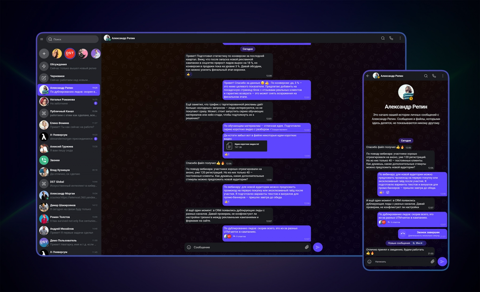 1 апреля 2026 года российская компания DST Global анонсировала запуск мессенджера нового поколения — DST App. Это коробочное решение для защищённых коммуникаций в организациях, сообществах и для личного использования.Ключевое преимущество продукта — развёртывание на серверах заказчика по модели perpetual license. Единоразовая оплата без абонентской платы даёт пользователям полный контроль над данными и ИТ‑инфраструктурой.Архитектура и возможностиDST App — полнофункциональная платформа для обмена сообщениями и файлами, видеоконференций и совместной работы. В отличие от облачных решений, все компоненты (веб‑сервер, база данных, файловое хранилище и поисковый движок) размещаются на оборудовании клиента.Интерфейс мессенджера сочетает удобство популярных публичных сервисов (навигация в стиле Telegram) с профессиональными инструментами командной работы, характерными для Slack: каналами, тредами, закреплёнными сообщениями и реакциями.Среди функциональных возможностей — личные и групповые чаты, видеозвонки в HD‑качестве с демонстрацией экрана, передача файлов без ограничений по размеру, полнотекстовый поиск с фильтрацией по дате, автору и типу контента.Особое внимание уделено интеграции с существующей ИТ‑инфраструктурой: платформа поддерживает Active Directory, LDAP, SAML 2.0, OpenID Connect и многофакторную аутентификацию (MFA).Искусственный интеллектВ состав платформы входят два ИИ‑модуля:- DST AI Translate — нейронный машинный перевод интерфейса и переписки в реальном времени на 134 языка (модель NMT);- DST AI Efos (для Enterprise‑версии) — онтологическая модель на базе технологий исследовательского проекта Λ-Универсум - LOGOS-κ и SemanticDB для построения графа знаний организации, анализа смысловых связей и генерации суммаризаций.Безопасность и соответствие требованиямDST App спроектирован для сред с повышенными требованиями к защите информации. Вся информация хранится на серверах заказчика — вендор не имеет доступа к переписке и файлам. Данные шифруются при передаче (TLS 1.3) и хранении (AES‑256).Платформа соответствует требованиям 152‑ФЗ, GDPR и отраслевым стандартам (медицина, госсектор). Поддерживаются многофакторная аутентификация (MFA), единый вход (SSO), ролевая (RBAC) и атрибутивная (ABAC) модели доступа, а также аудит событий безопасности и экспорт переписки для служебных проверок.Администрирование и кастомизацияАдминистративная панель даёт детальный контроль над системой: управление пользователями и группами, мониторинг активности, настройка компонентов (базы данных, Elasticsearch, файлового хранилища) и политик безопасности.Продукт поставляется с открытым кодом, что позволяет проводить независимый аудит безопасности, адаптировать интерфейс под корпоративный стиль и дорабатывать функциональность силами внутренней IT‑команды.Целевые сегменты и модель распространенияРешение ориентировано на государственные органы, медицинские учреждения, промышленные предприятия, финансовые организации, IT‑компании, образовательные учреждения, НКО и частных пользователей.Модель распространения — perpetual license: клиент единоразово приобретает право на использование ПО без абонентской платы за каждого пользователя. В стоимость входят установка и первичная настройка системы специалистами вендора, документация и техническая поддержка, а также возможность использования на неограниченном количеств