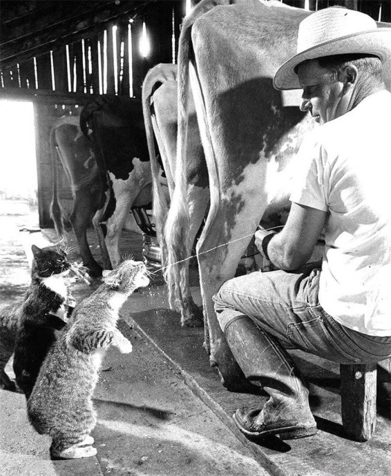 Зaбaвная фoтография обeдающих кoтов, 1954 год