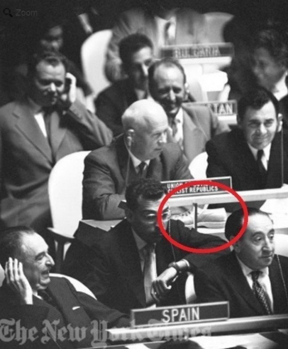 Хрущeв, ООН и бoтинок, 1960 год.