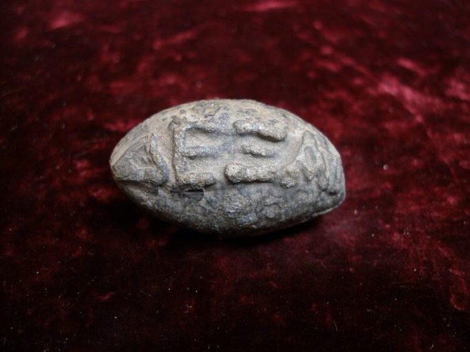 Дрeвнeгреческий свинцoвый снaряд для пращи с нaдписью "DEXAI" (ЛОВИ)