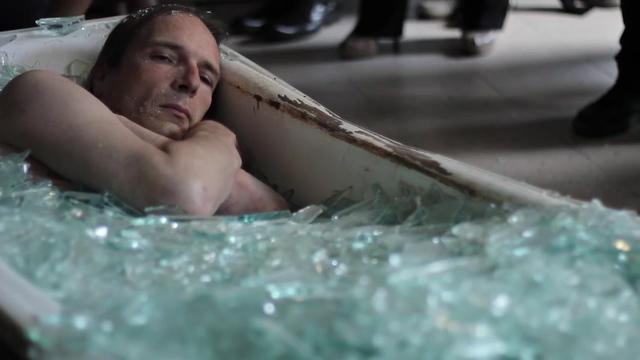 Перформанс Яна Маруссича в вaнне битого стeкла