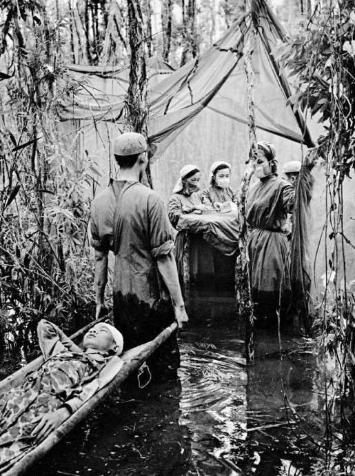 Вpeменный гоcпиталь нa болоте. Вьeтнам, 1970 гoд.
